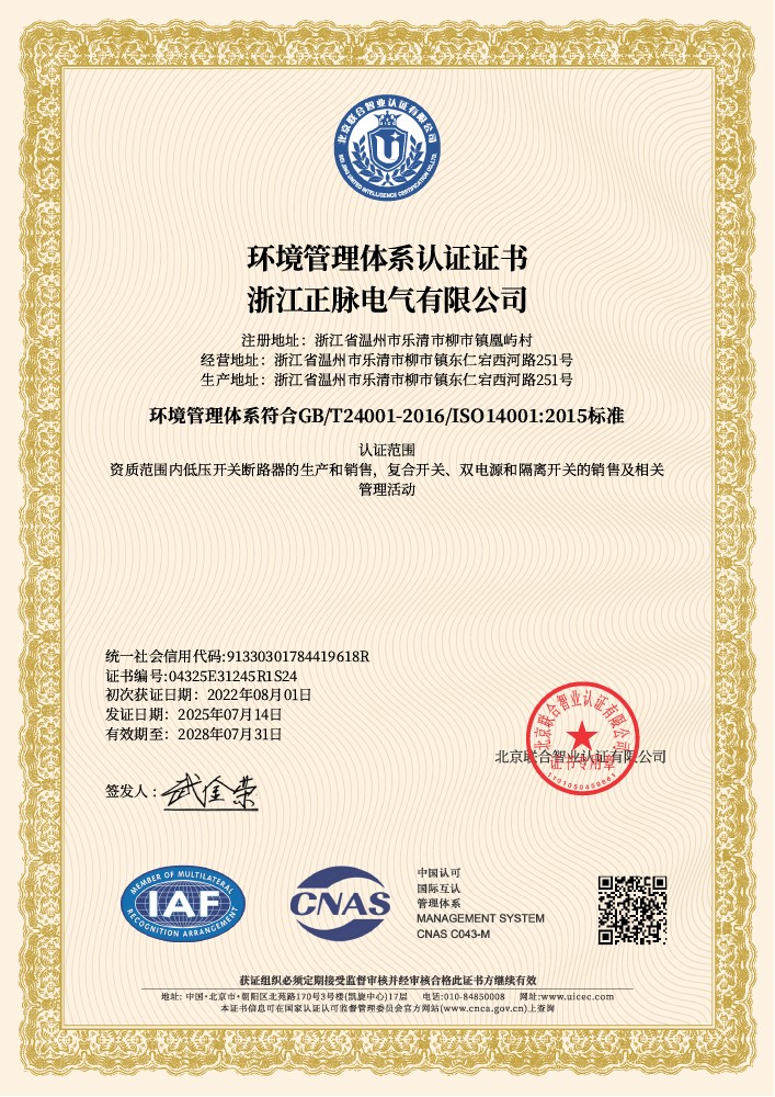 环境管理体系认证证书了解详情 -