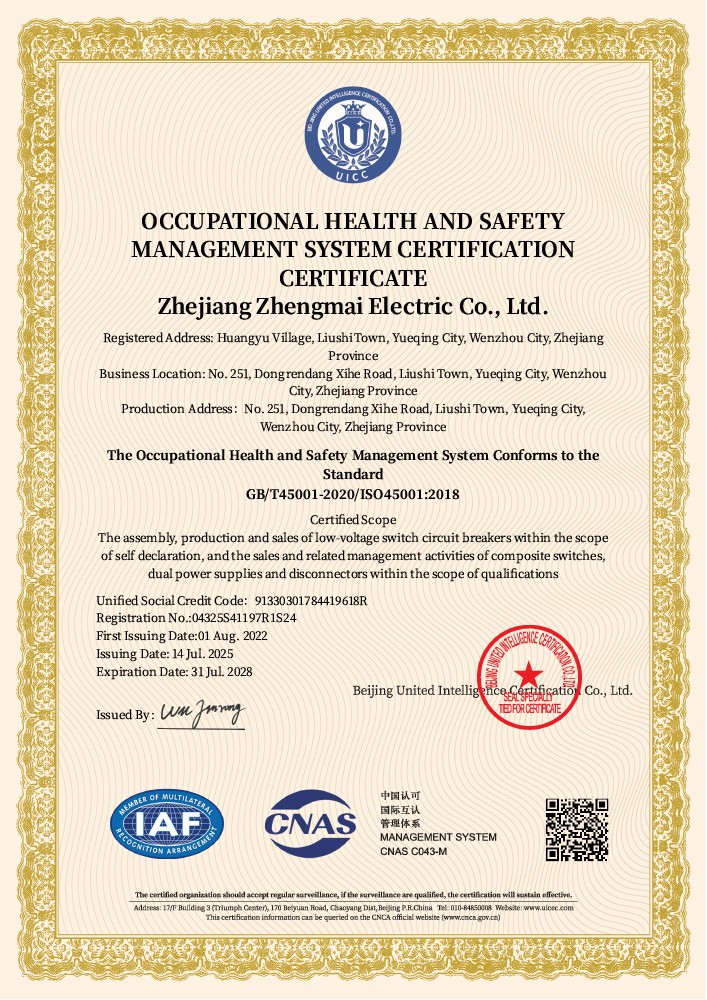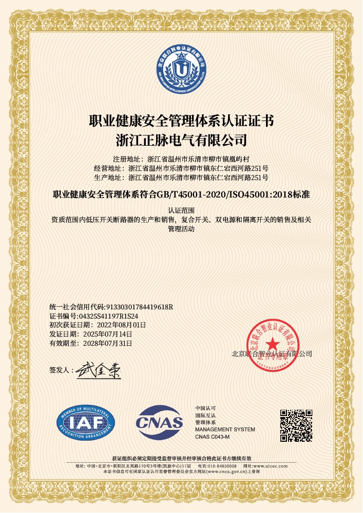 职业健康安全管理体系认证证书了解详情 -