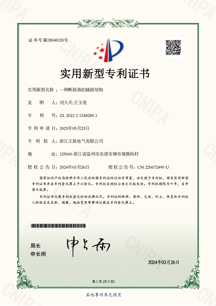 202329786一种断路器的插接结构2023212482851实用新型专利证书了解详情 -