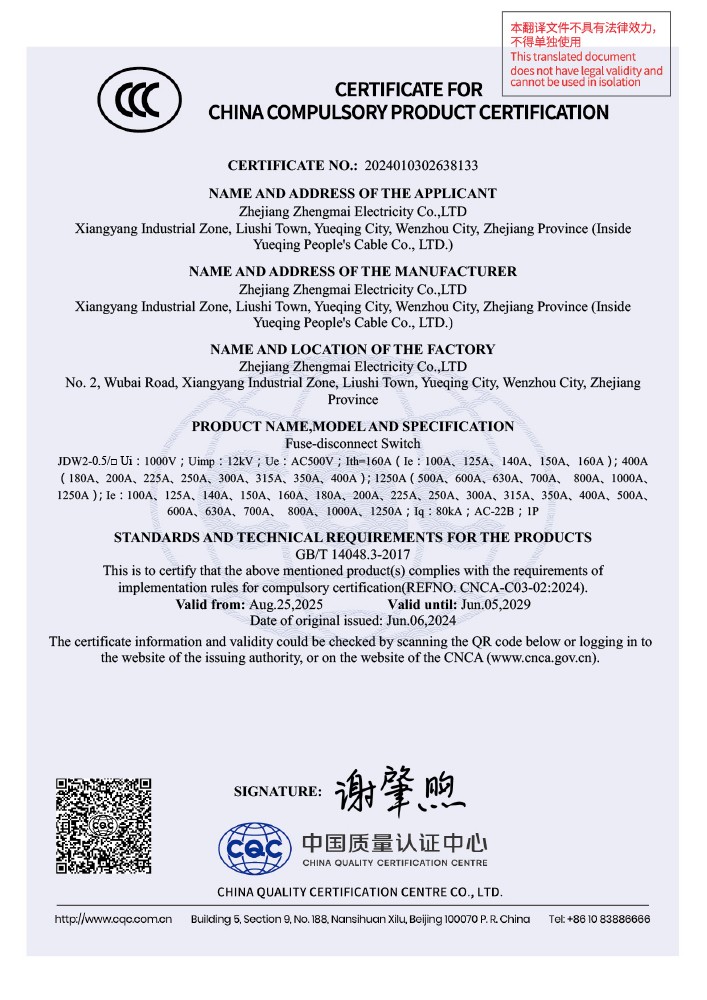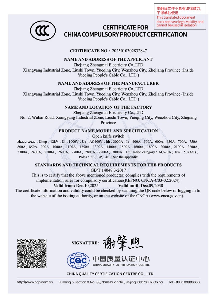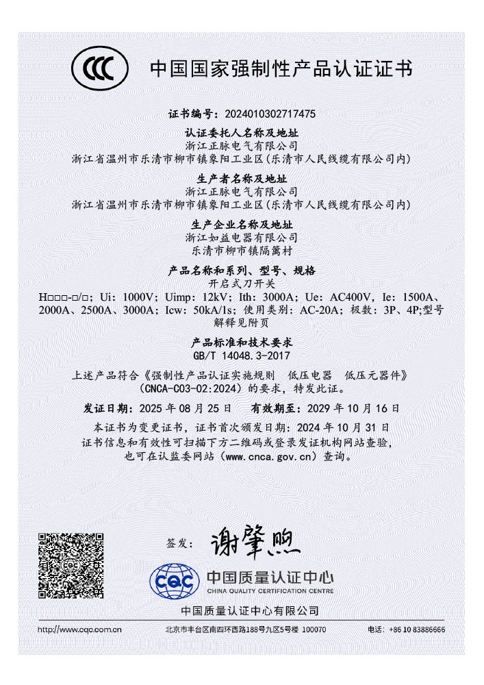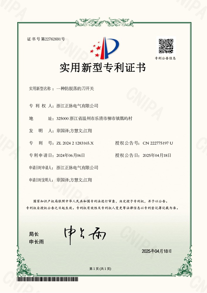 202422478一种防脱落的刀开关202421283165X实用新型专利证书了解详情 -