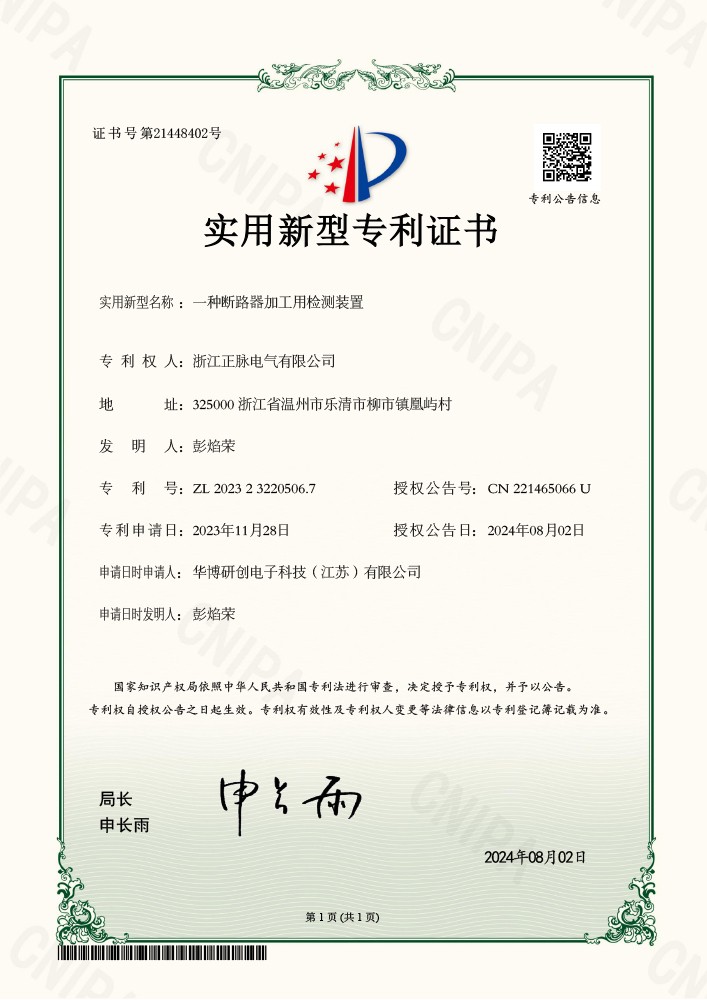 202422694一种断路器加工用检测装置2023232205067实用新型专利证书了解详情 -