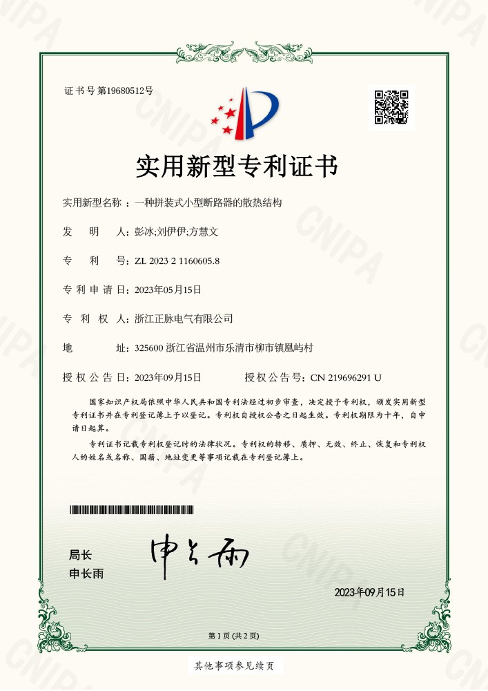 一种拼装式小型断路器的散热结构.实用专利证书了解详情 -